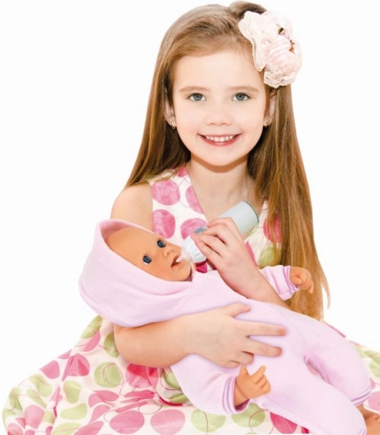 La conception rose et blanche avec une graduation pratique rendent le biberon authentique pour jouer.