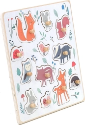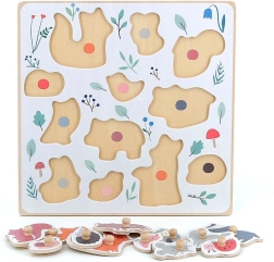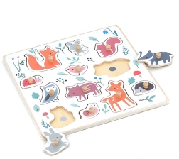 Ce puzzle en bois de qualité sur le thème de la forêt a été conçu en collaboration avec l’illustratrice Sarah Betz et offre aux enfants la joie de la découverte. Les points colorés sur le plateau indiquent délicatement où placer chaque pièce, favorisant la concentration et la logique. Grâce aux poignées en bois solides, les enfants s’entraînent à une bonne prise et développent leur motricité fine.