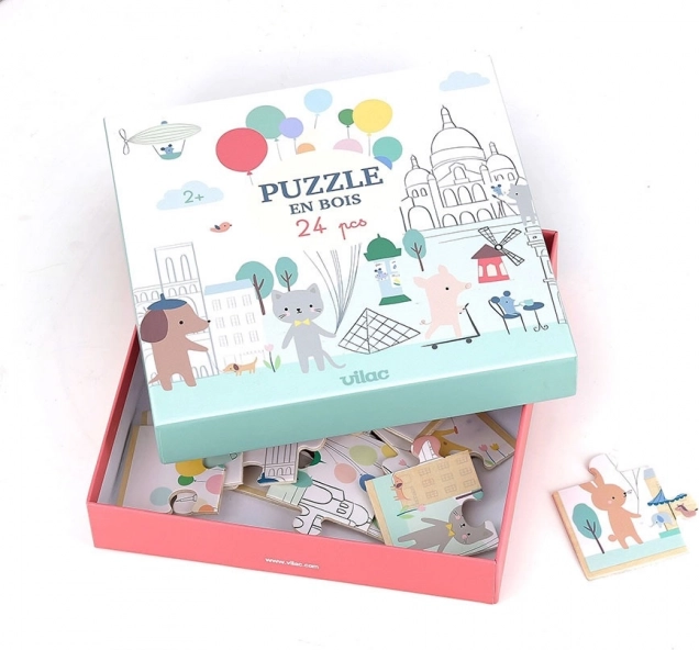 Découvrez la magie de Paris avec les puzzles en bois de qualité de la marque Vilac, illustrés par Sarah Betz. Ces puzzles panoramiques en bois de 24 pièces développent la motricité fine, l’observation et la concentration des enfants dès 2 ans. Grâce à un matériau résistant et à l’inspiration de l’approche Montessori, ils sont idéals pour apprendre ensemble en s’amusant.