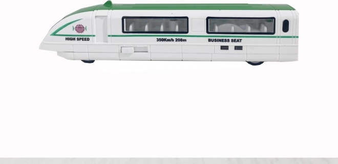 Ce modèle élégant de train à grande vitesse combine une construction en métal (die-cast) avec des détails en plastique de qualité pour un excellent rendu et une grande résistance. Grâce au mécanisme à friction, il suffit de tirer le train vers l’arrière et de le relâcher – il démarre tout seul, garantissant des heures d’amusement sans piles.