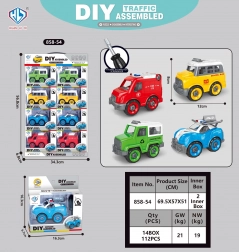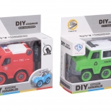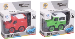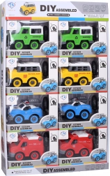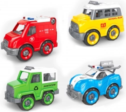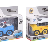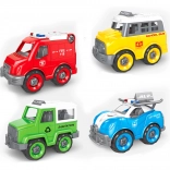 Voiture à visser ludique et éducative pour enfants, offrant la possibilité de développer la motricité fine. Disponible en 4 variantes différentes : pompiers, police, bus et nettoyage.