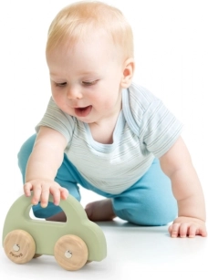 Cette petite voiture en bois minimaliste, d’un vert doux, est un excellent choix comme premier jouet pour développer le mouvement et la coordination. Grâce à sa forme ergonomique, les petites mains la saisissent et la poussent facilement sur le sol, tandis que les roues silencieuses garantissent un déplacement fluide et discret.