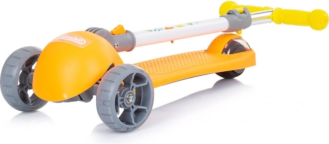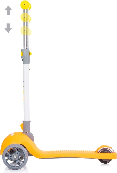 Trottinette pour enfants Chipolino Funky Orange, légère et stable, avec roues LED colorées, guidon réglable en hauteur et plateau antidérapant pour une conduite sûre et amusante. Idéale pour les enfants dès 3 ans, avec une capacité de charge de 50 kg.