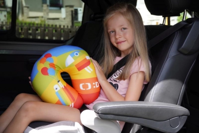 Oreiller de voyage pour enfants en forme de U, sous licence ČT Déčko, offrant une soutien ergonomique de la nuque et un confort en déplacement. En doux tissu peluche, idéal pour la voiture, le bus et l’avion.