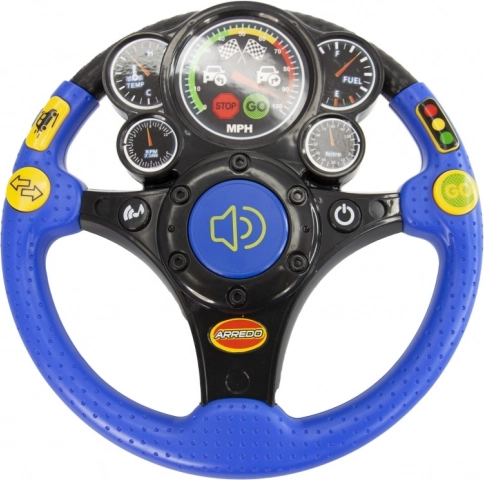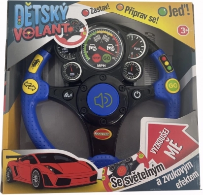 Volant pour enfant 24 cm avec lumières, sons et chansons tchèques. Annonces « Arrête-toi ! » et « Prépare-toi et pars ! », klaxon, clignotants, freinage. Super jeu de rôle de conducteur.