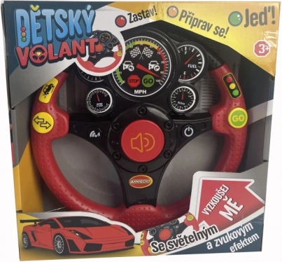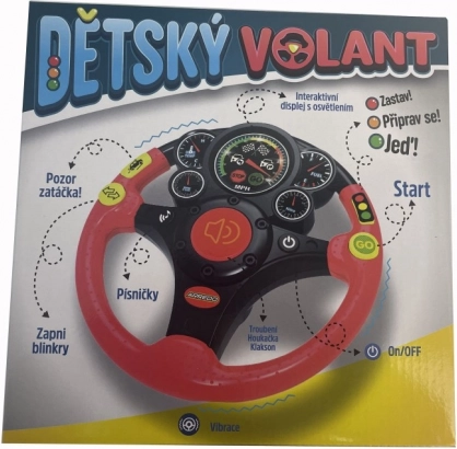 Le volant joue des instructions en tchèque (« Arrête-toi ! », « Prépare-toi et pars ! ») et deux chansons amusantes qui maintiennent les enfants attentifs et divertis.