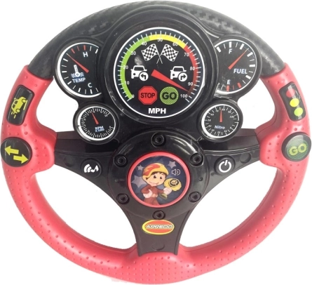 Volant interactif pour enfant d’un diamètre d’environ 24 cm offrant une expérience de conduite réaliste avec des annonces en tchèque, des effets lumineux et sonores et deux chansons tchèques originales. Les enfants apprécieront le klaxon, le démarrage du moteur, le clignotement des indicateurs, la sirène, les bruits de freinage ainsi que des instructions comme « Arrête-toi ! » et « Prépare-toi et pars ! » – idéal pour un jeu de conduite amusant et sûr.