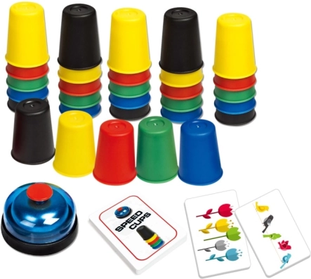 Gobelets Rapides est un jeu dynamique qui apportera assurément du rire et du plaisir dans chaque foyer. Le paquet contient 30 gobelets, une sonnette, 24 cartes avec des images et un manuel, vous pouvez donc commencer à jouer immédiatement.