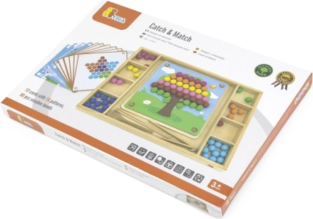 Jeu en bois « Attrape et Range » de la marque Viga pour enfants dès 3 ans, qui développe non seulement leur capacité à reconnaître les couleurs et les motifs, mais aussi la coordination œil-main et la concentration.