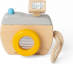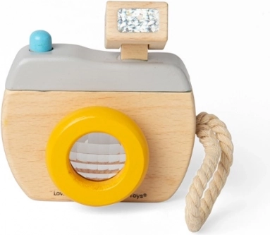 Cet appareil photo en bois avec flash est idéal pour une première découverte de la photographie. Grâce à des détails bien pensés comme le « flash », le bouton et l’objectif marqué, les enfants peuvent profiter pleinement du jeu de rôle et imiter les adultes. Soigneusement fabriqué en bois de qualité et complété par une sangle en tissu, il offre un divertissement sécurisé et résistant jour après jour.
