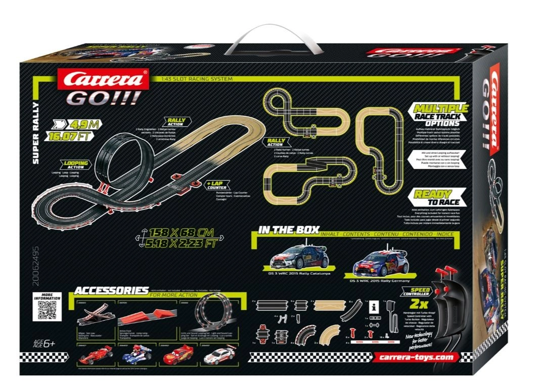 Entrez dans l’univers de la véritable course avec la piste CARRERA GO!!! Super Rally. La combinaison de lignes droites rapides, d’un looping exigeant et de virages serrés garantit un divertissement intense et une expérience compétitive pour les enfants comme pour les adultes. Un choix idéal pour tous ceux qui aiment les courses dynamiques et veulent repousser leurs limites.
