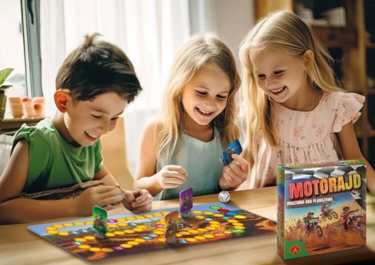 Motorajd est un jeu de société familial simple, accessible dès 4 ans. Prépare ta moto, enfile ton casque, prends les dés en main et fonce sur la piste pour prouver tes capacités !