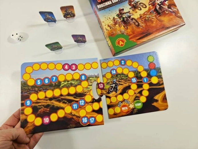 Partez sur une piste exigeante où pierres, racines et dalles glissantes ne sont que quelques-uns des obstacles à surmonter pour devenir le roi de Motorajd ! Les cases du plateau cachent divers défis ! Réussiras-tu à éviter les slaloms entre les arbres, ou gagneras-tu du temps grâce à une bonne entrée dans le virage ? N’oublie pas qu’en route vers la victoire, chaque décision compte !