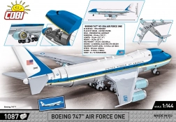 Assemblez une réplique précise du BOEING 747 Air Force One à partir de 1087 pièces. Une fois terminé, le modèle mesure 46 cm de long pour une envergure de 42 cm – idéal pour une vitrine comme pour le jeu.