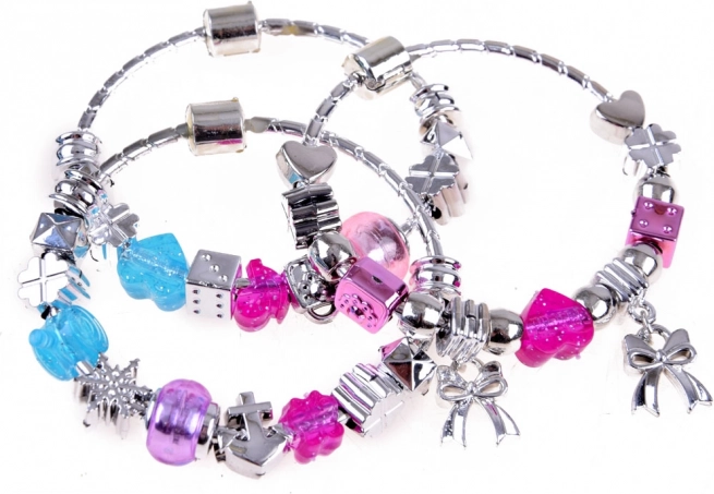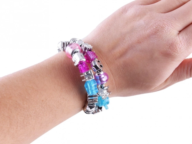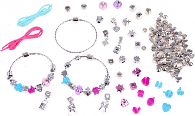 Ce kit ludique apporte tout le nécessaire pour fabriquer des bracelets stylés selon votre imagination. Combinez des perles roses et bleues avec des charms argentés, accordez-les aux cordons ou enfilez-les sur les bracelets fournis pour créer des accessoires qui soulignent votre style.
