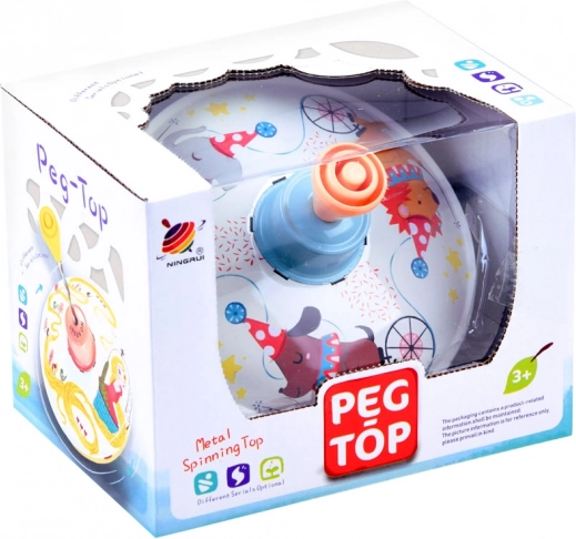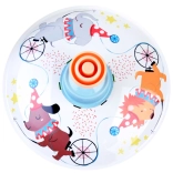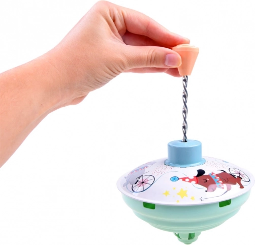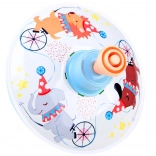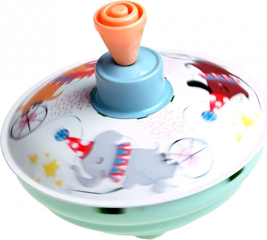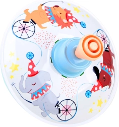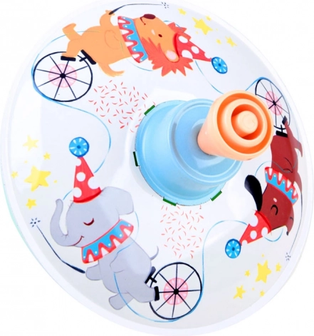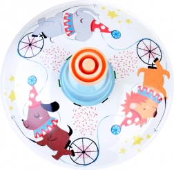 La surface de jeu est décorée de joyeuses illustrations animales sur le thème du cirque, qui stimulent l’imagination et la perception visuelle. Le corps métallique combiné à une poignée en plastique assure une grande résistance même au quotidien. La toupie est idéale pour le développement de la motricité fine, de la coordination œil-main et de la patience.