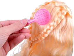 Le coffret comprend également une brosse rose pour créer différentes coiffures – des chevelures lisses jusqu’aux tresses. La poupée est idéale pour les jeux imaginatifs, les fêtes, ou comme décoration de chambre d’enfant. Une fabrication de qualité en plastique résistant garantit une longue durée de vie et un jeu en toute sécurité.
