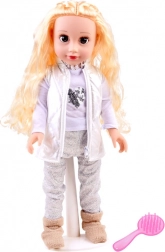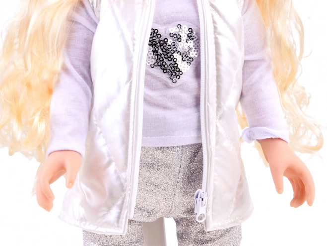 Découvrez la poupée Adrianna – une beauté stylée qui illuminera chaque royaume d’enfant. Elle a de longs cheveux blonds soyeux parfaits à coiffer, de grands yeux avec cils recourbés et une tenue moderne: gilet matelassé nacré, leggings scintillants, top blanc avec petit cœur argenté et bottines toutes douces. Grâce à ses membres articulés, elle pose à merveille sur son support inclus.