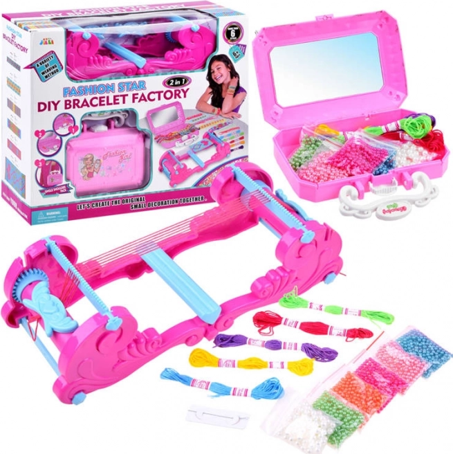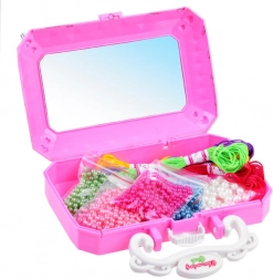 Ce kit créatif pour enfants est idéal pour faire ses premiers pas dans l’univers des bijoux DIY. Grâce au métier bien pensé, les enfants fabriquent facilement des bracelets colorés avec des perles brillantes, parfaits comme cadeaux personnalisés pour maman, une sœur ou une amie. Le coffret plastique avec miroir aide à garder tous les accessoires ensemble et offre de la place pour les créations terminées.