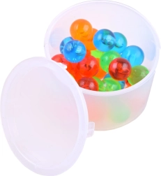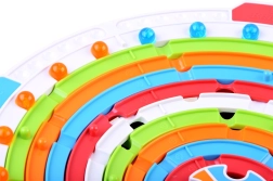 Le jeu est fabriqué en plastique avec des cercles de différentes couleurs vives (bleu, vert, rouge, orange) qui captivent et incitent à jouer.