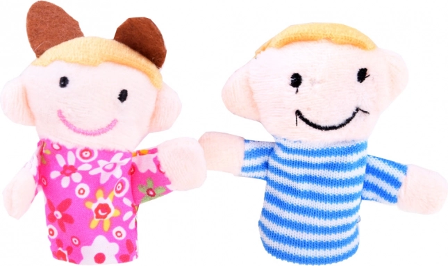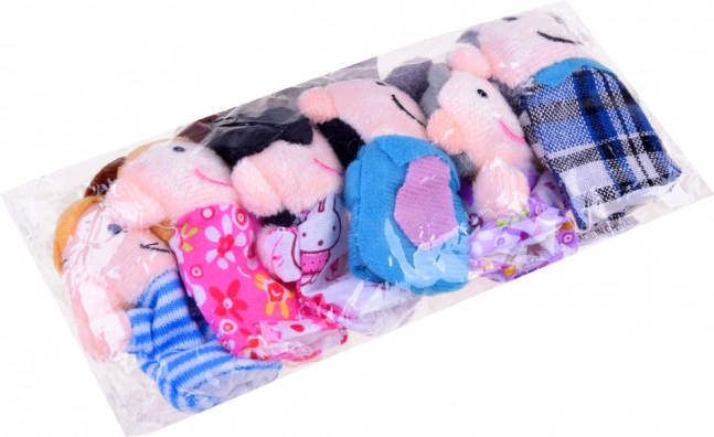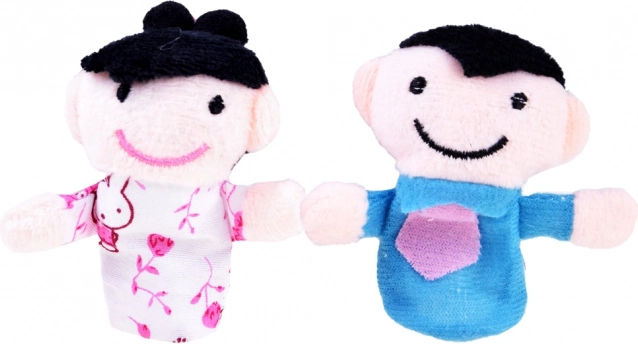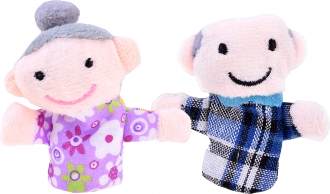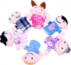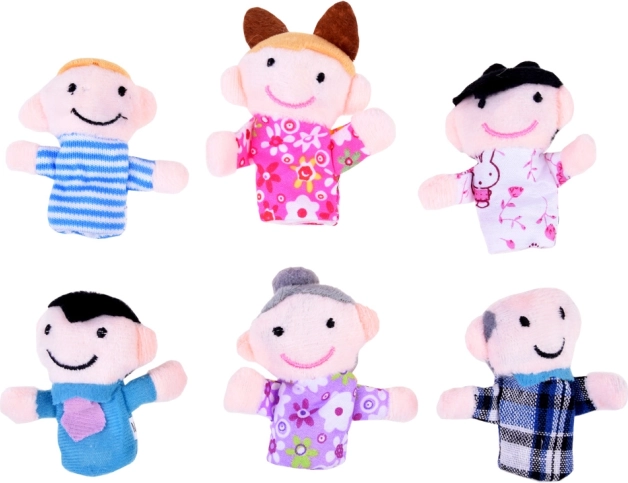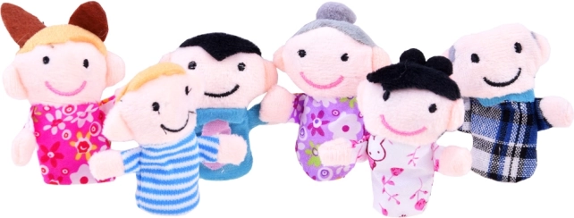 Le set comprend six marionnettes à doigts – grand-père, grand-mère, maman, papa, garçon et fille.