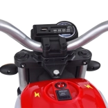 La moto pour enfants est conçue pour une manipulation confortable et sûre. Les roues larges, les repose-pieds et la selle ergonomique renforcent la confiance en conduite et le développement de l’équilibre.