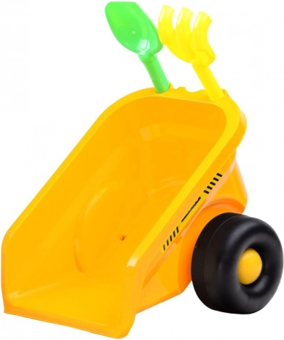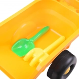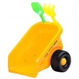 La remorque détachable avec supports pour ranger le petit râteau et la pelle fournis stimule l’imagination et le jeu sur le chantier ou dans le sable.