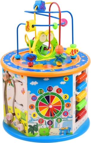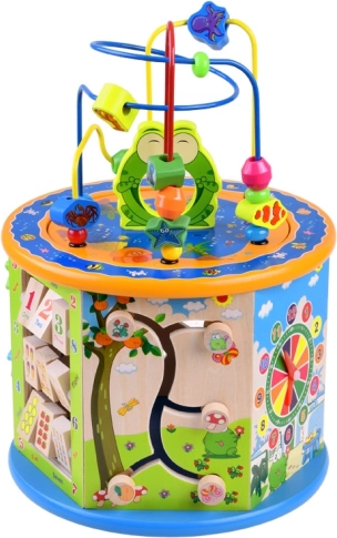 Ce cube éducatif en bois offre une large gamme d’activités qui aideront votre enfant à acquérir de nouvelles compétences et connaissances. Il comprend de nombreuses fonctions, dont un labyrinthe à perles, un boulier coloré et des formes à encastrer. Tous les éléments sont conçus pour les petites mains, assurant un jeu sûr et confortable.