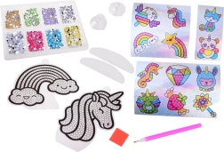 Créez 2 grandes décorations à poser ou à suspendre et 12 autocollants pailletés aux motifs arc‑en‑ciel et licornes. Parfaits pour les fenêtres, les cahiers et les cadeaux.
