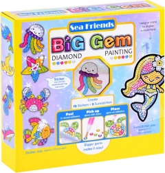 Ce coffret Peinture diamantée Sea Friends permet aux enfants de réaliser des images scintillantes des amis de la mer. Il suffit de retirer le film protecteur, de saisir un strass avec l’applicateur enduit de cire et de le placer, selon les couleurs, sur l’autocollant ou le modèle adhésif. Si un strass est mal positionné, vous pouvez le déplacer facilement avant séchage.