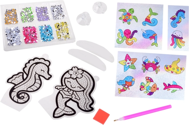 Créez des autocollants scintillants et deux images suspendues avec des amis de la mer. Les créations finies se posent facilement sur des socles ou se suspendent grâce aux ventouses avec crochets.