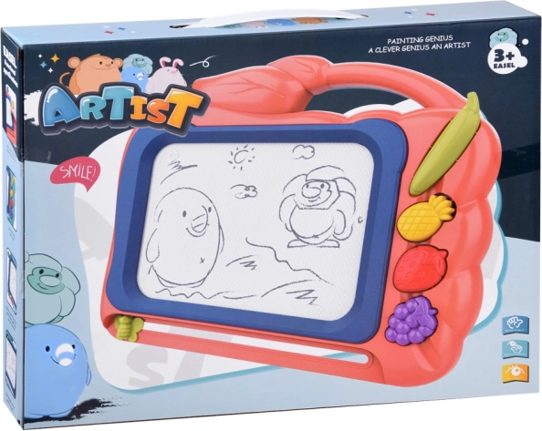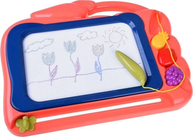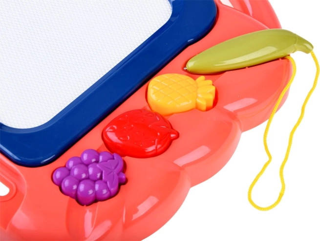 Ce tableau de dessin créatif offre un fond coloré sur lequel les enfants réalisent facilement des images à l’aide du stylo fourni. Trois tampons en forme de fruits (ananas, fraise et grappe de raisin) ajoutent des détails ludiques à chaque création, développent la motricité fine et encouragent le plaisir de créer.