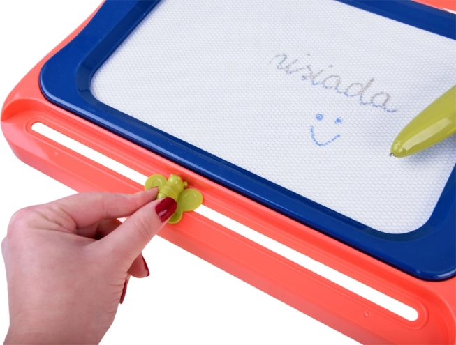 La surface de dessin colorée motive les enfants à créer et donne à chaque image une touche joyeuse. Idéal pour les premiers dessins et l’apprentissage ludique.