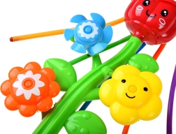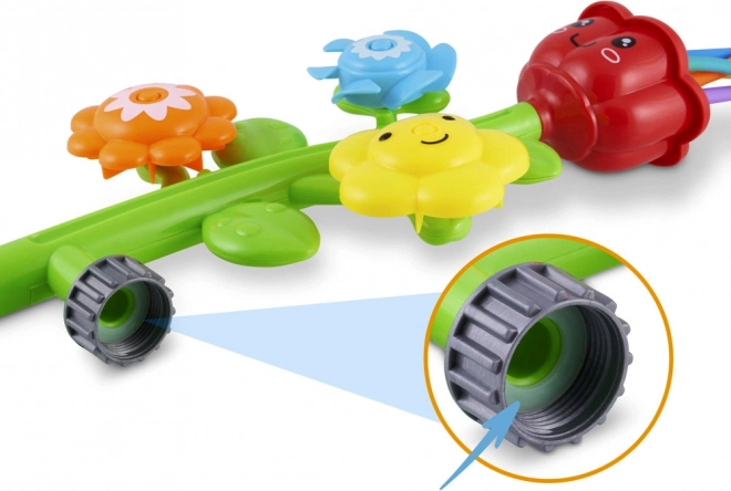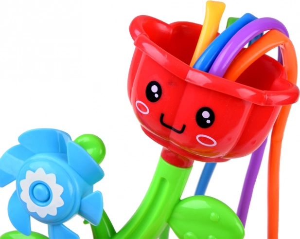 Conception en plastique coloré avec des fleurs joyeuses qui tournent lorsque l'eau coule, assurant ainsi un jeu interactif.