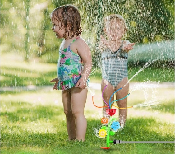 Profitez d'un plaisir sans fin avec cet arroseur pour enfants coloré qui peut disperser l'eau dans toutes les directions. Lors de la pulvérisation de l'eau, les fleurs tournent joyeusement et les couleurs se mêlent magnifiquement, ce qui stimule encore plus le jeu et la joie.
