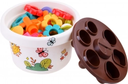 Au centre de la base du pot de fleurs se trouve un trou pour insérer les jetons, ce qui améliore la coordination main-œil. L'ensemble comprend également des autocollants colorés pour décorer le pot, stimulant la créativité des enfants.