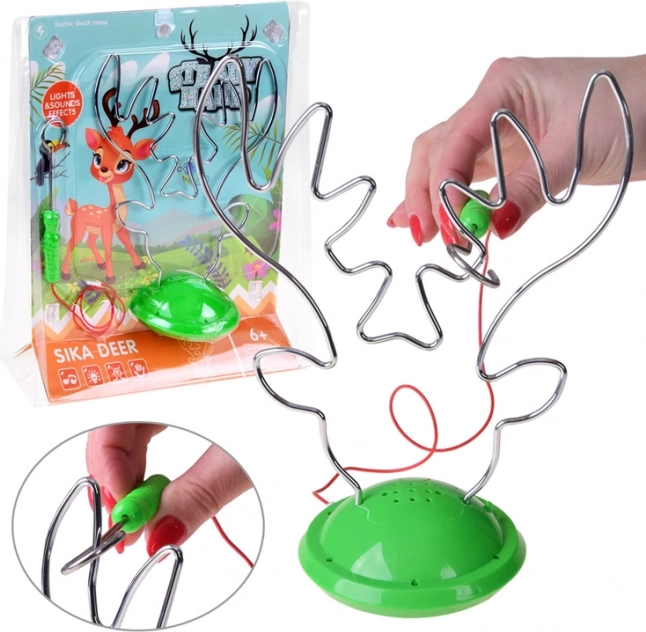 Le jeu peut se jouer de deux façons : le joueur doit revenir au début après chaque erreur, ou bien on compte les contacts et le joueur avec le moins de touches gagne. Le labyrinthe en forme de ramures de cerf paraît simple au premier abord, mais il recèle de nombreux virages et courbes piégeux, garantissant une expérience palpitante !