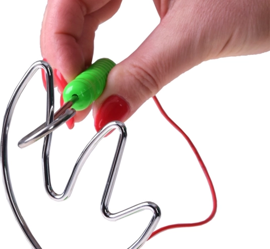 Avant de commencer à jouer, il faut monter le labyrinthe et connecter le câble du pointeur à la base. Après l’activation avec le bouton ON/OFF, le jeu est prêt. La mission du joueur est de parcourir le labyrinthe sans que le pointeur ne touche le fil. Chaque contact est signalé par un son et des lumières rouges clignotantes sur la base.