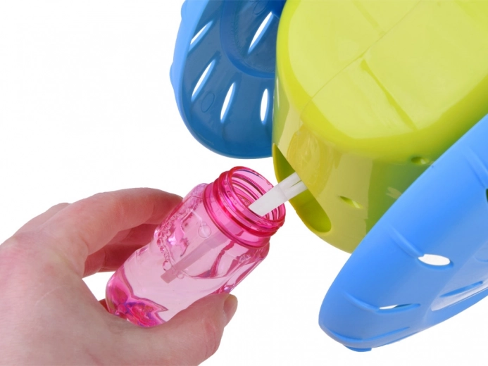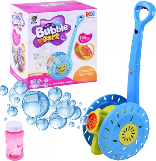 Le machine à bulles est un divertissement apprécié des enfants de tous âges. Avec ce fantastique chariot à bulles poussé, votre enfant découvrira la magie des bulles ! Il suffit de fixer une bouteille avec un liquide spécial et de profiter du lâcher de bulles arc-en-ciel pendant le mouvement.
