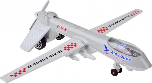 Le modèle de drone en métal offre non seulement des détails précis, mais aussi des ailes pliables et une hélice rotative, ce qui en fait un divertissement idéal pour les enfants comme pour les adultes. Le drone est équipé d'une fonction pull back, qui permet, après rétraction, un mouvement vers l'avant. Cette caractéristique, associée aux effets sonores et lumineux, donne l'impression d'une véritable action aérienne.