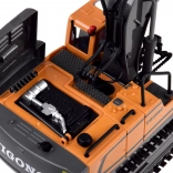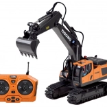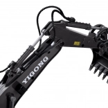 La télécommande ergonomique 2,4 GHz assure une portée stable sans interférences et permet la marche avant/arrière, le virage droite/gauche, la rotation sur place ainsi que le contrôle complet du bras et du godet. Un mode démo est également disponible. La pelleteuse possède un capot moteur ouvrant et une finition de qualité pour une longue durée de vie.