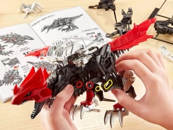 Une fois assemblé, le raptor prend vie : il bat des ailes, ouvre la gueule et remue la queue. Le mécanisme alimenté par 1× AAA offre un jeu dynamique et une présentation spectaculaire du modèle.