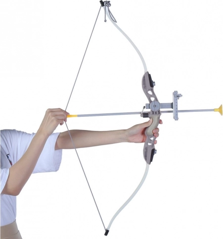 Arc en plastique léger avec prise en main confortable, adapté même aux plus jeunes — parfait pour débuter le tir à l’arc.