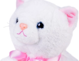 Son pelage blanc ultra doux avec un nœud rose, un adorable petit nez rose et de grands yeux invite aux câlins.