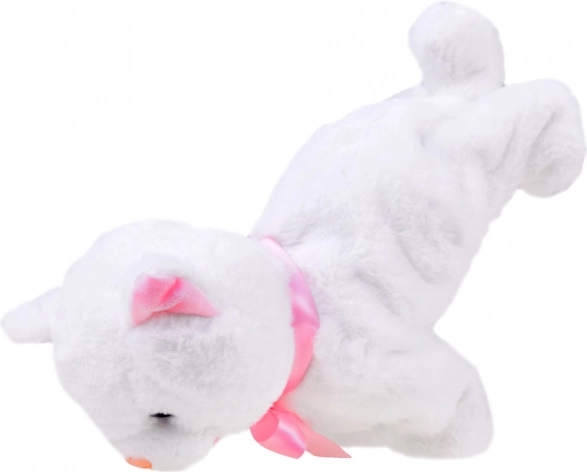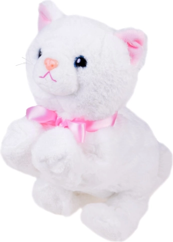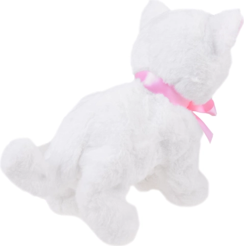Adorable et chaton en peluche interactif qui deviendra le meilleur ami de chaque enfant. Au toucher des pattes ou au claquement des mains, il émet des sons de chat et réalise des mouvements acrobatiques. Son doux pelage blanc, son nœud rose, son petit nez rose et ses jolis yeux garantissent de longs moments de câlins et de jeu.