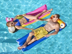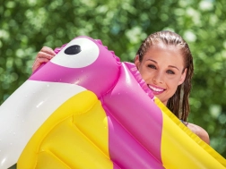 Le matelas intègre un oreiller gonflable qui soutient la tête et la nuque pour une détente totale. Le graphisme estival coloré à motif d’oiseau ajoute du style et de la bonne humeur à vos loisirs aquatiques. Sa construction légère permet un gonflage et un dégonflage rapides ainsi qu’un transport et un rangement faciles.