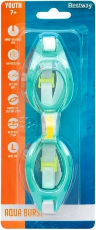 Les lunettes pour enfants Bestway Aqua Burst sont conçues pour les premières leçons de natation comme pour les jeux aquatiques quotidiens. Les verres résistants en polycarbonate protègent les yeux contre les chocs et, grâce au filtre UV, contre le soleil intense. Le traitement antibuée aide à maintenir une vision claire sous l’eau.