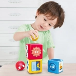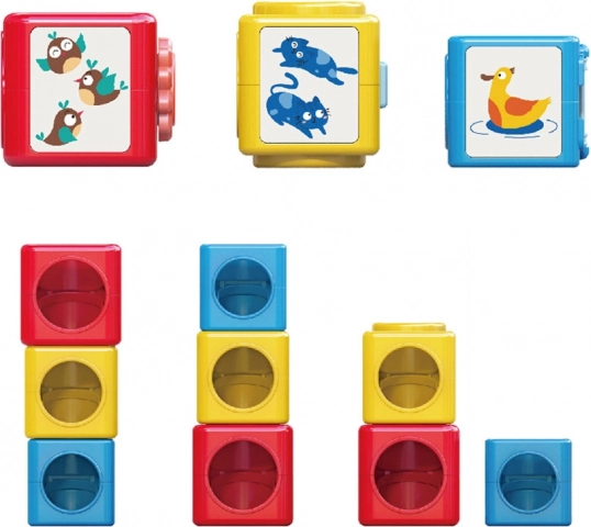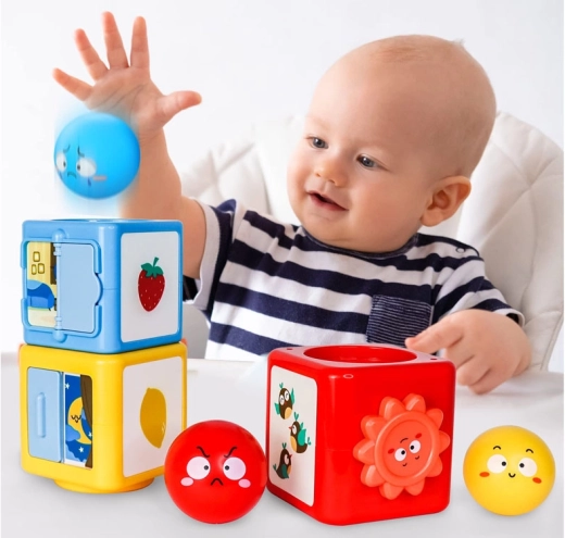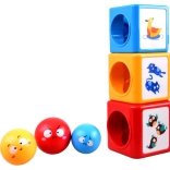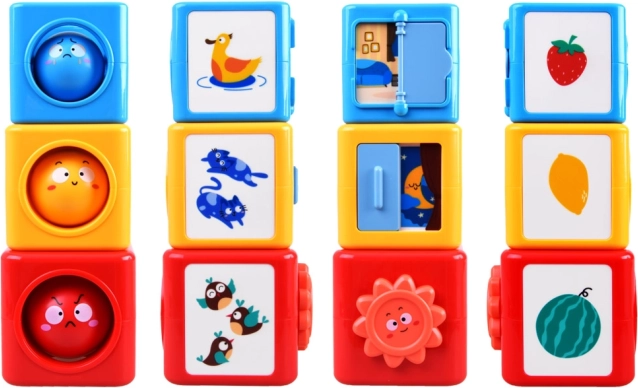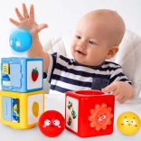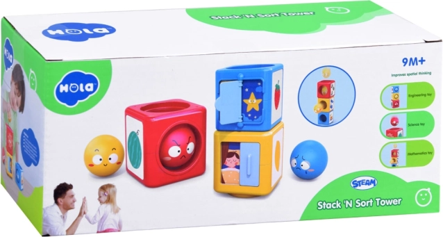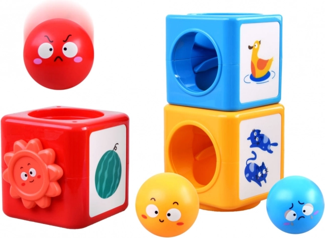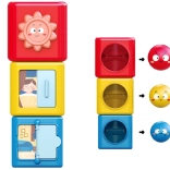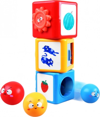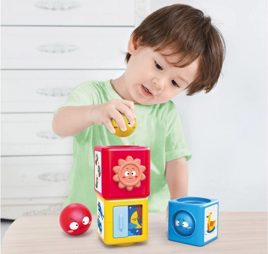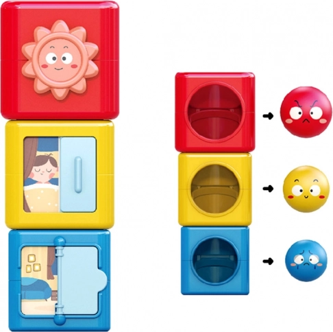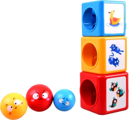 A l'intérieur de ce jeu de construction coloré, vous trouverez des boules et des cubes qui peuvent être assemblés et triés. Le jouet enseigne aux enfants à reconnaître les couleurs, différencier les émotions et explorer le monde qui les entoure à travers le jeu. Le jouet aide à développer la pensée spatiale, les compétences analytiques et la motricité fine.