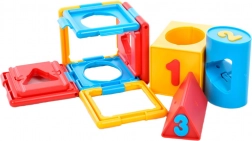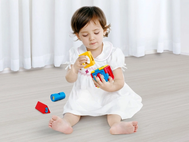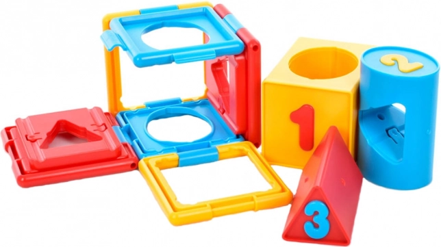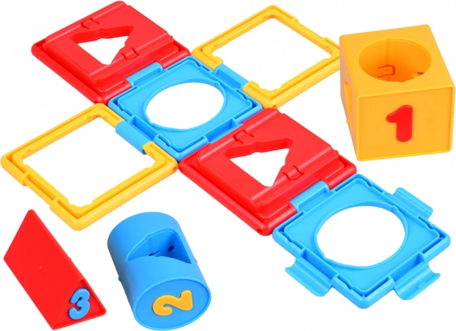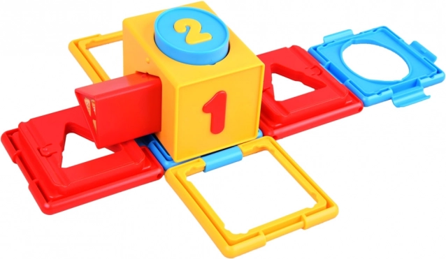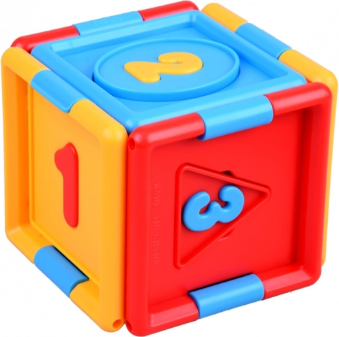 Le cube contient différentes formes et chiffres, ce qui aide à l’apprentissage des formes et des chiffres de base.