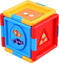 Le cube est décoré d’illustrations colorées et de teintes vives, ce qui renforce son attrait et stimule la curiosité des enfants. Il est fabriqué en plastique, garantissant sa durabilité et sa sécurité pour les jeunes utilisateurs.